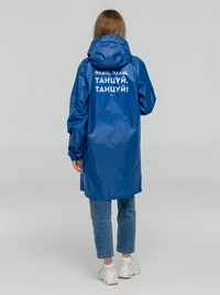 Плащ-дождевик из ткани таффета на молнии с капюшоном. Складывается в мешочек — удобно брать с собой.