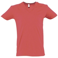 Модная мужская футболка с глубоким V-образным вырезом, отделанным резинкой 1*1, подойдет как для промо-акций, так и в качестве корпоративной униформы. Полугребенной 100% хлопок, двойная прострочка на рукавах и по низу изделия, укрепляющая тесьма по вороту.